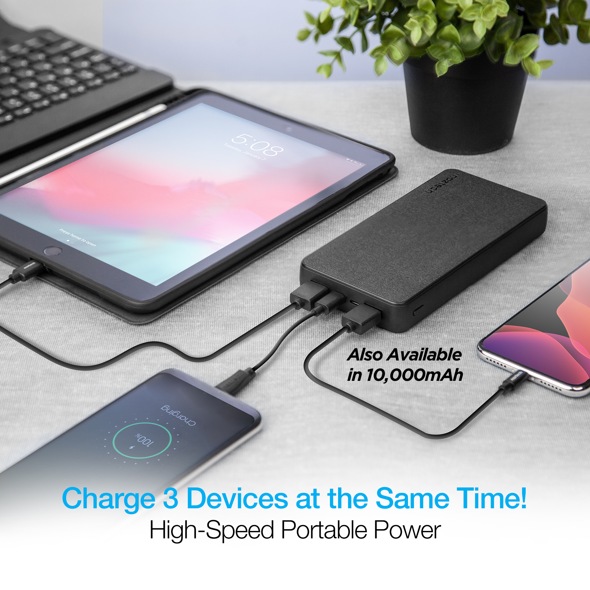 For those with less-demanding power requirements, the 20,000 mAh 18W PD+QC Fast Charge High-Capacity Power Bank is ideal for charging tablets, smartphones, and smaller USB devices. Word class safety features include TSA-approved capacity, overvoltage protection, temperature regulation, and more.